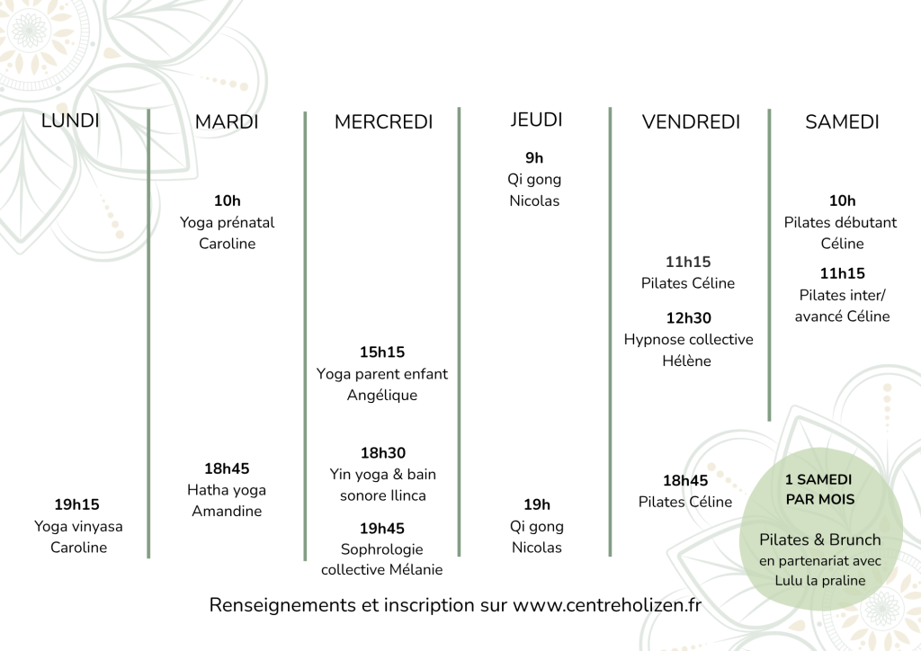 Chez HoliZen, les cours collectifs sont plus que du mouvement, ce sont aussi des moments de recentrage, de connexion au corps et d’ancrage. Nos pratiques sont ouvertes à tous niveaux et guidées par des enseignant(e)s bienveillant(e)s et passionné(e)s.